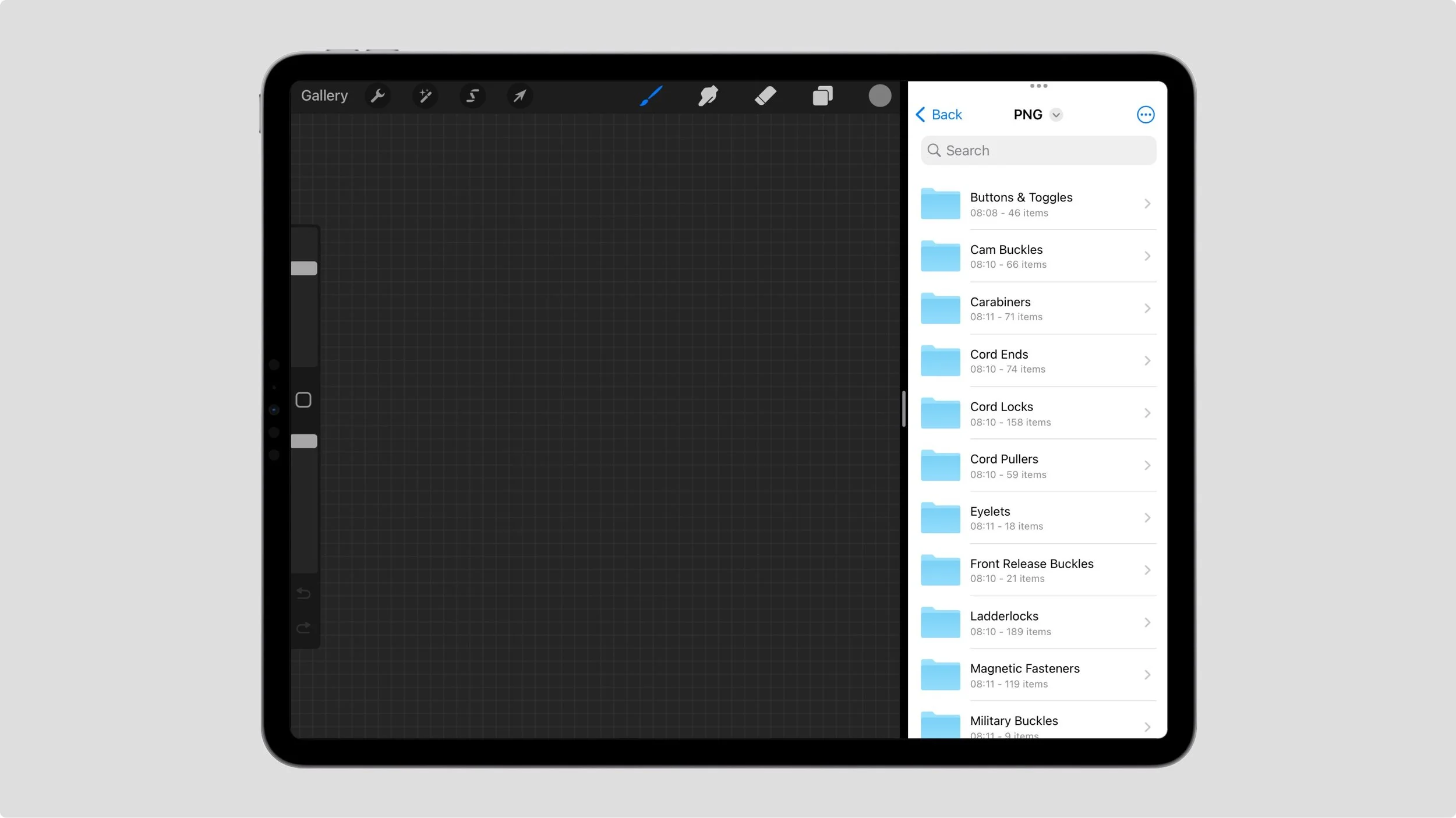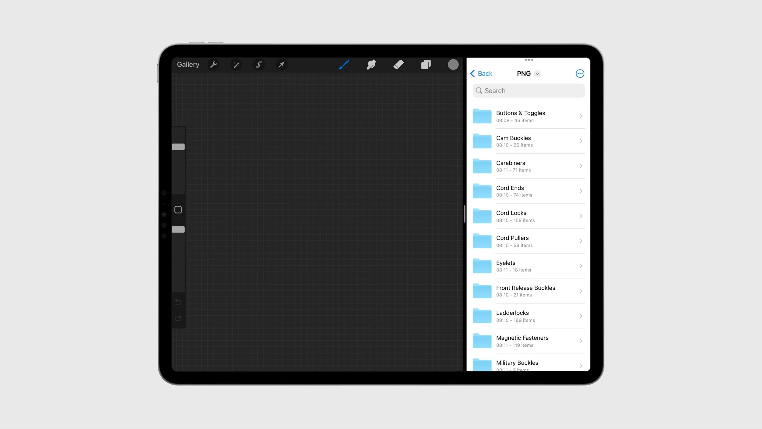 Use Split View to drag-and-drop components into your Procreate design projects.