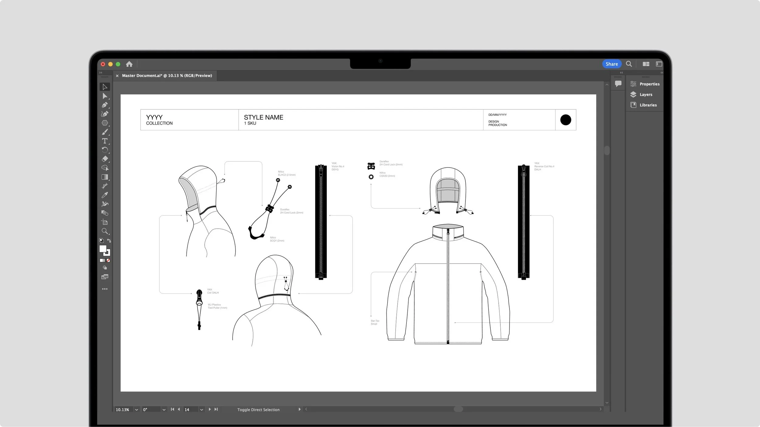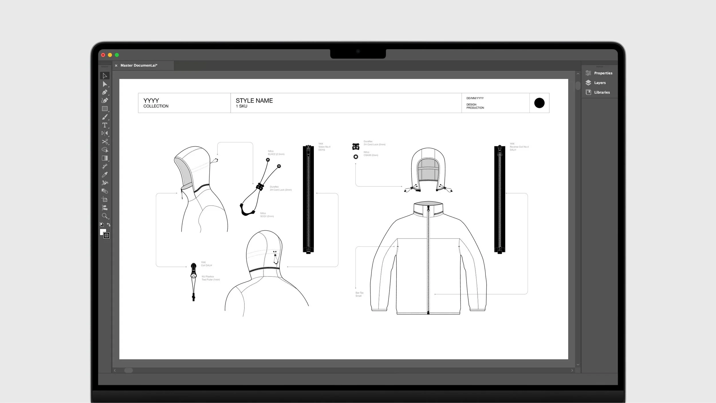 Explore the Master Doc to find relevant components for your tech-packs and designs.
