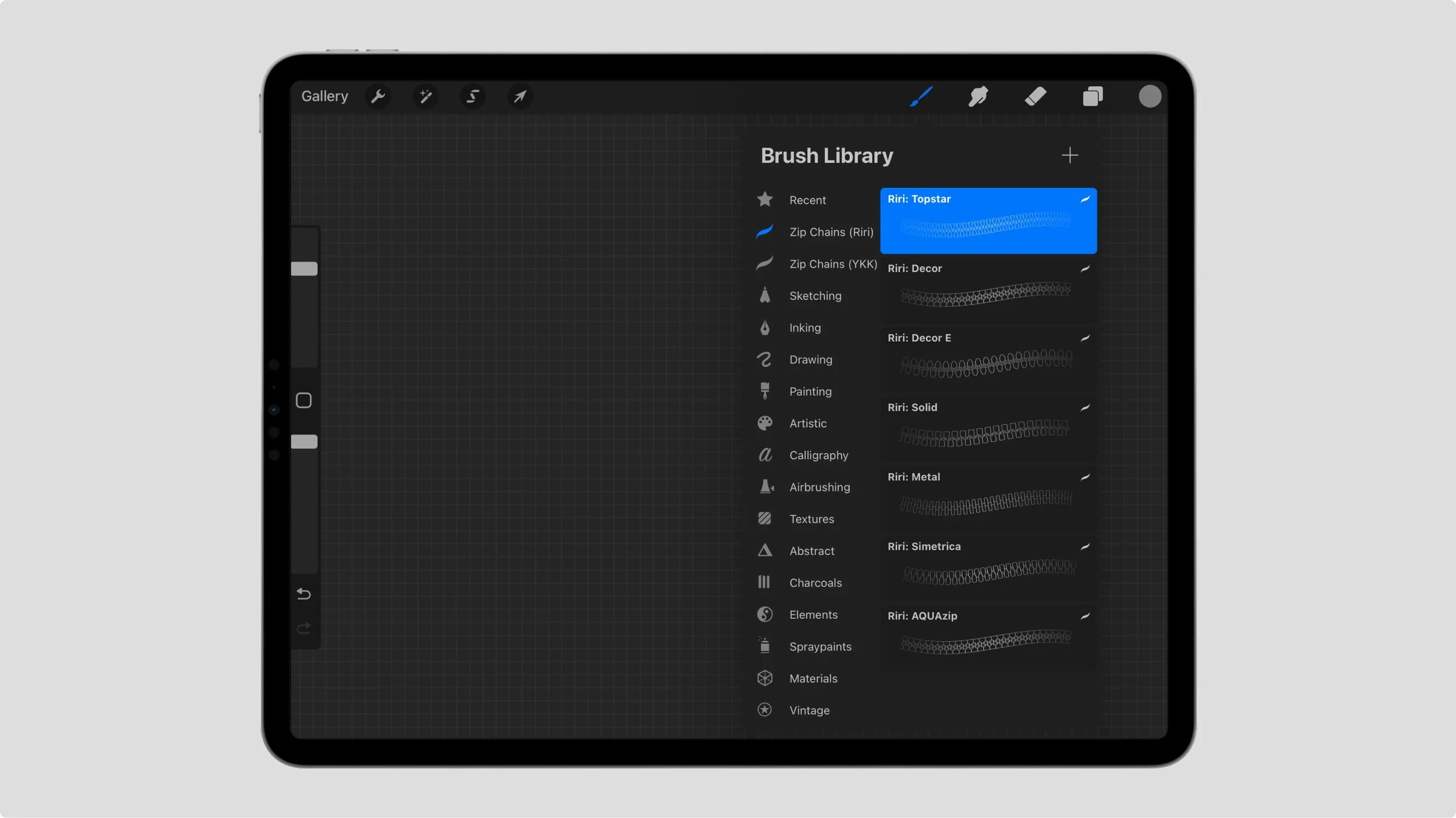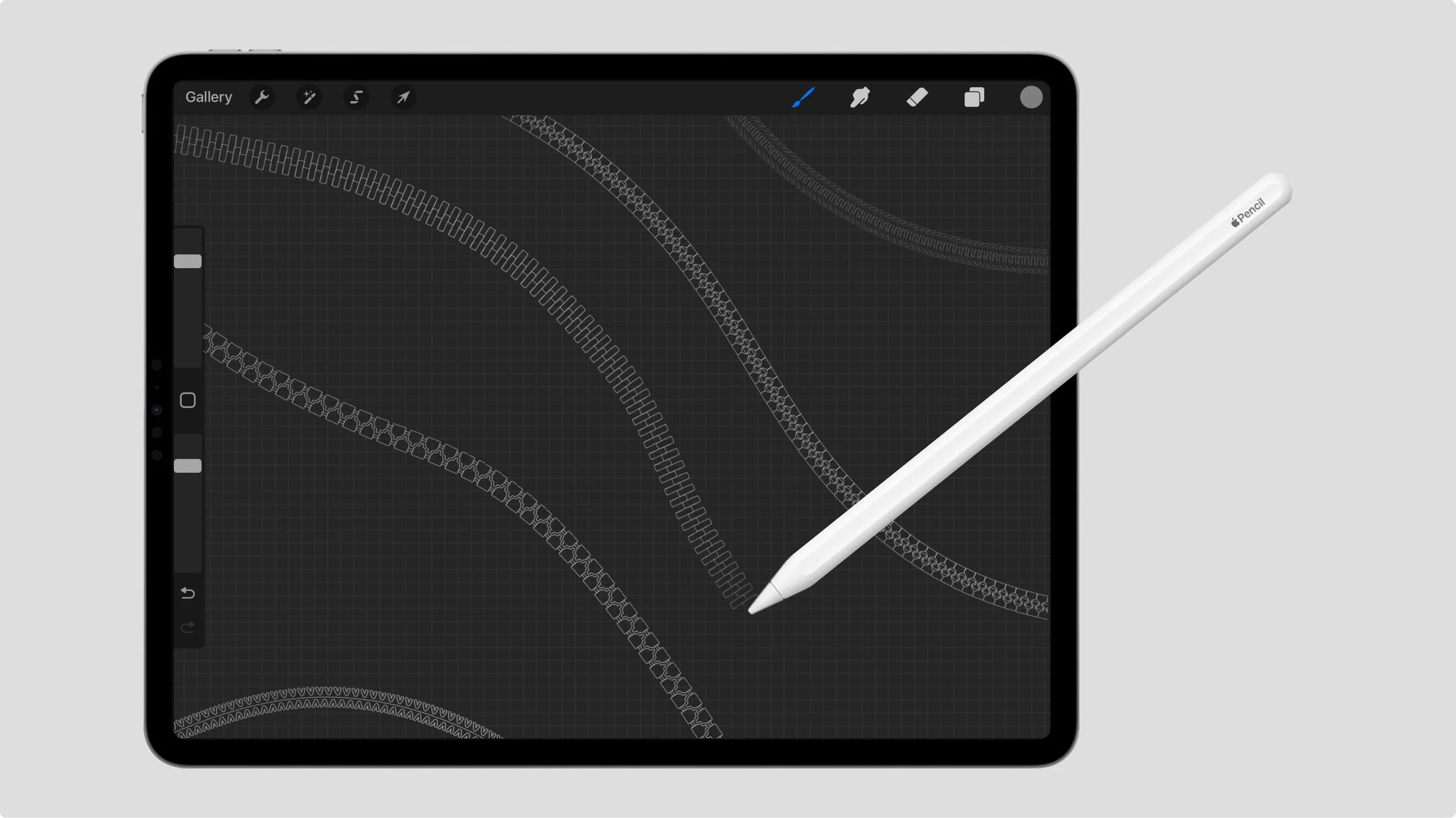 Select a zip chain brush and use your Apple Pencil to effortlessly draw it into your design.