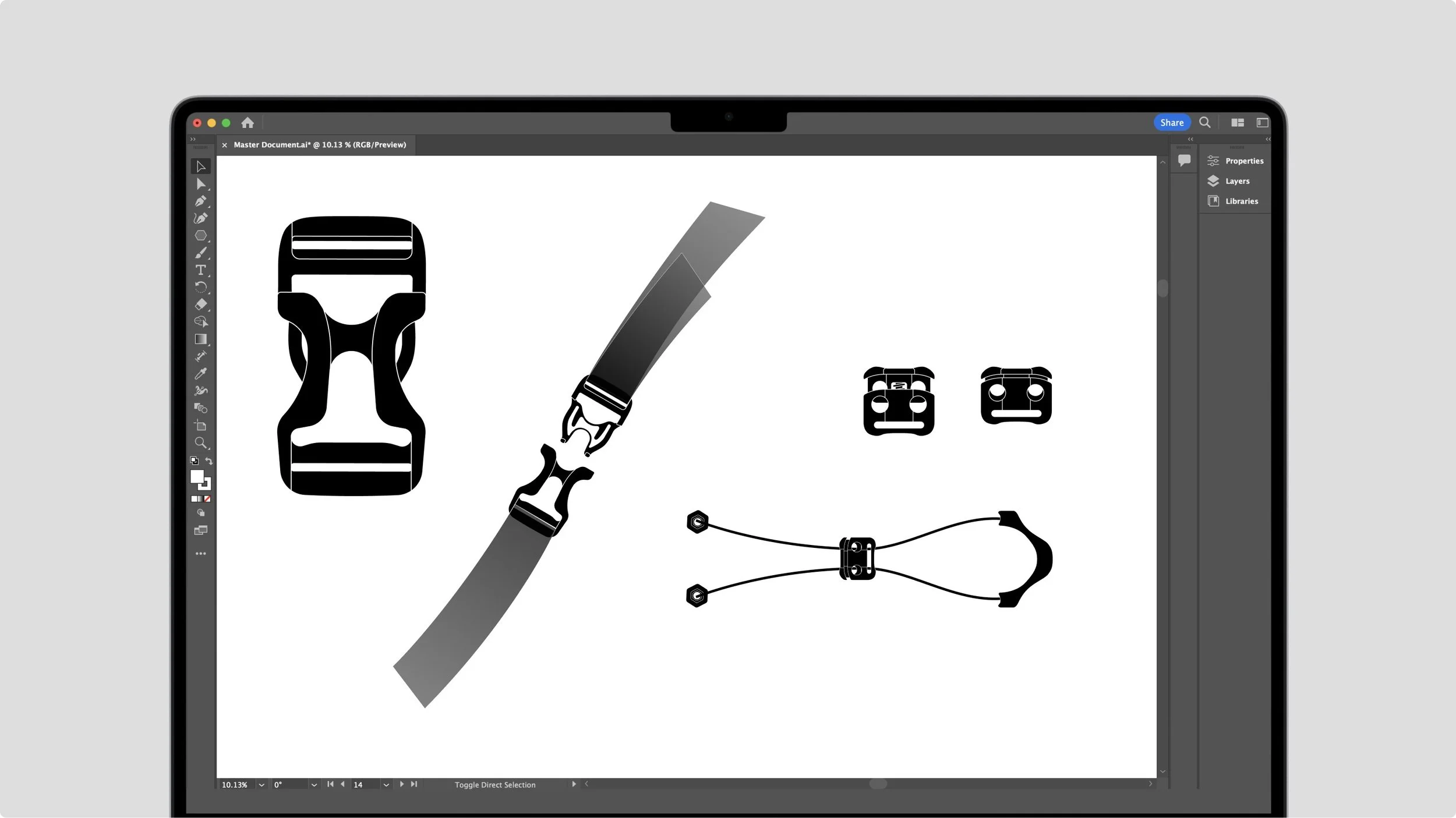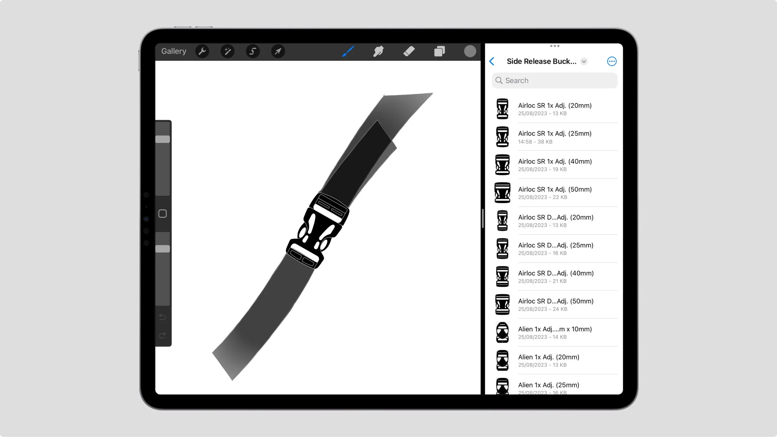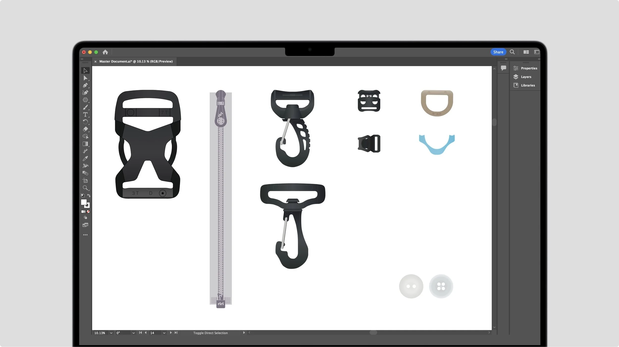 Double-click on buckles and cord locks to open them and add detailed close-ups to your designs.