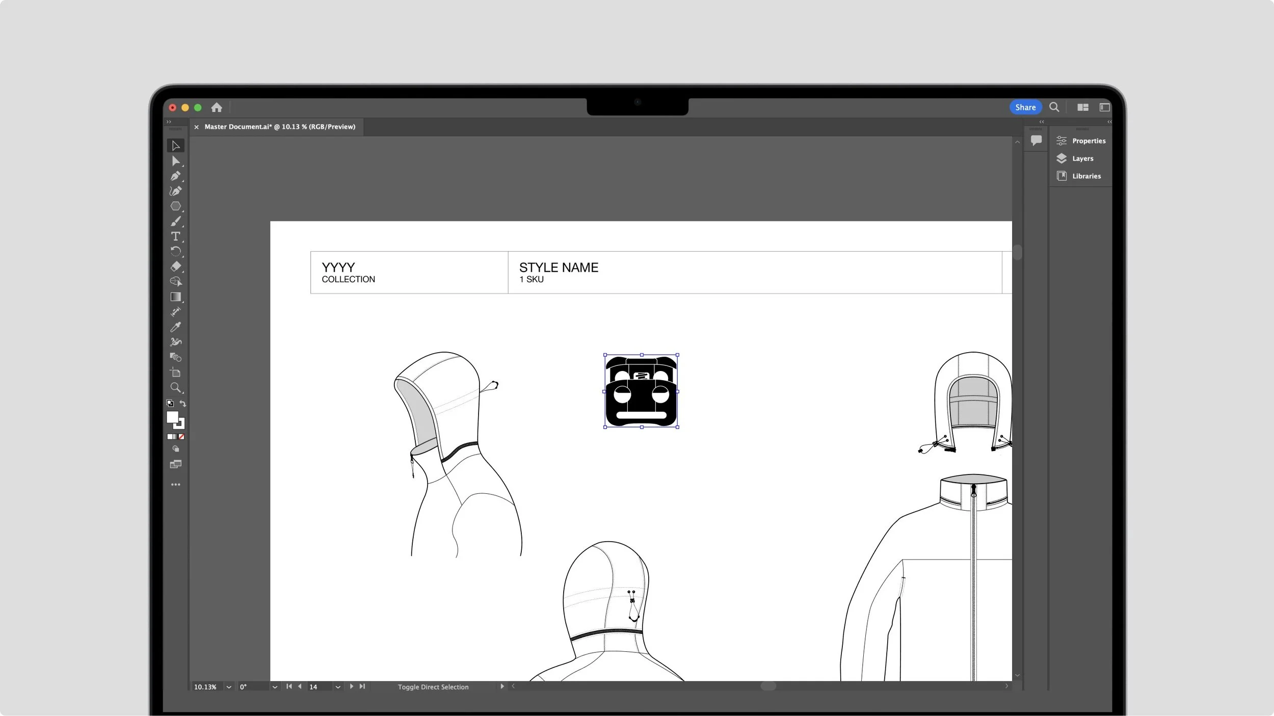 Open your tech-pack or design file, and press (CMD+V) to paste the asset inside.