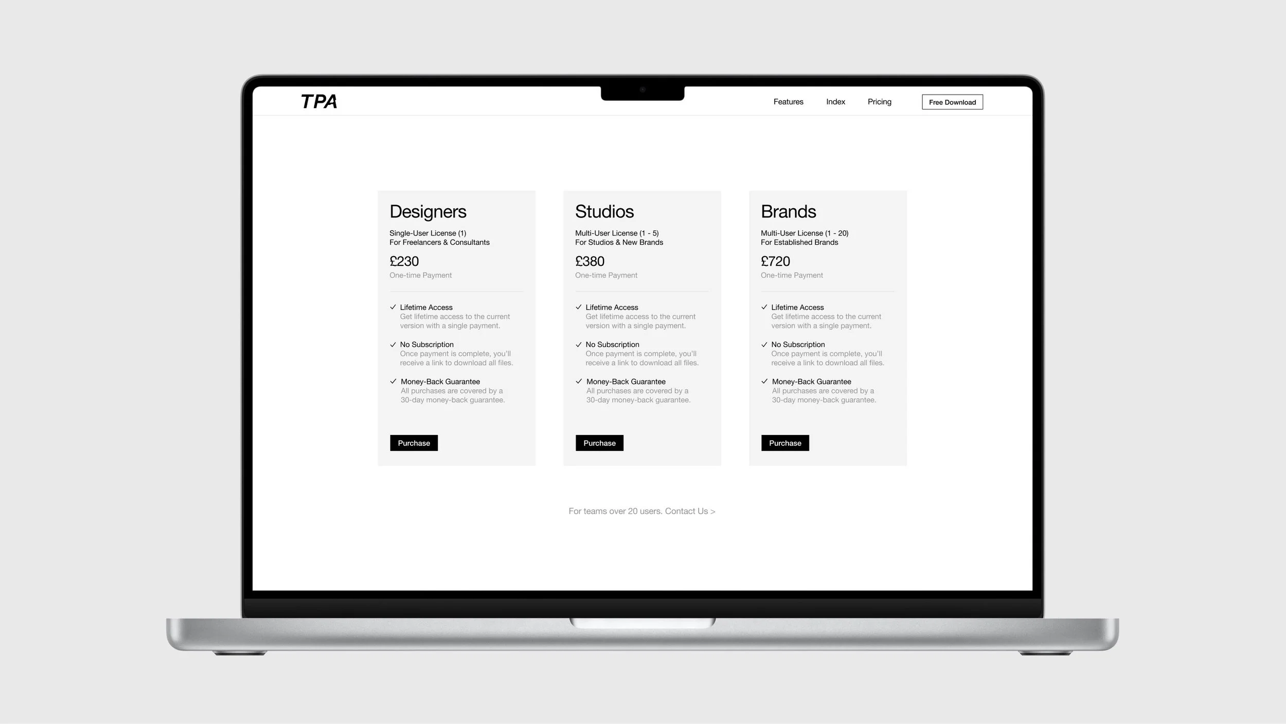 Select the license that fits your needs and click ‘purchase’ to proceed. For full license terms, see our EULA page.