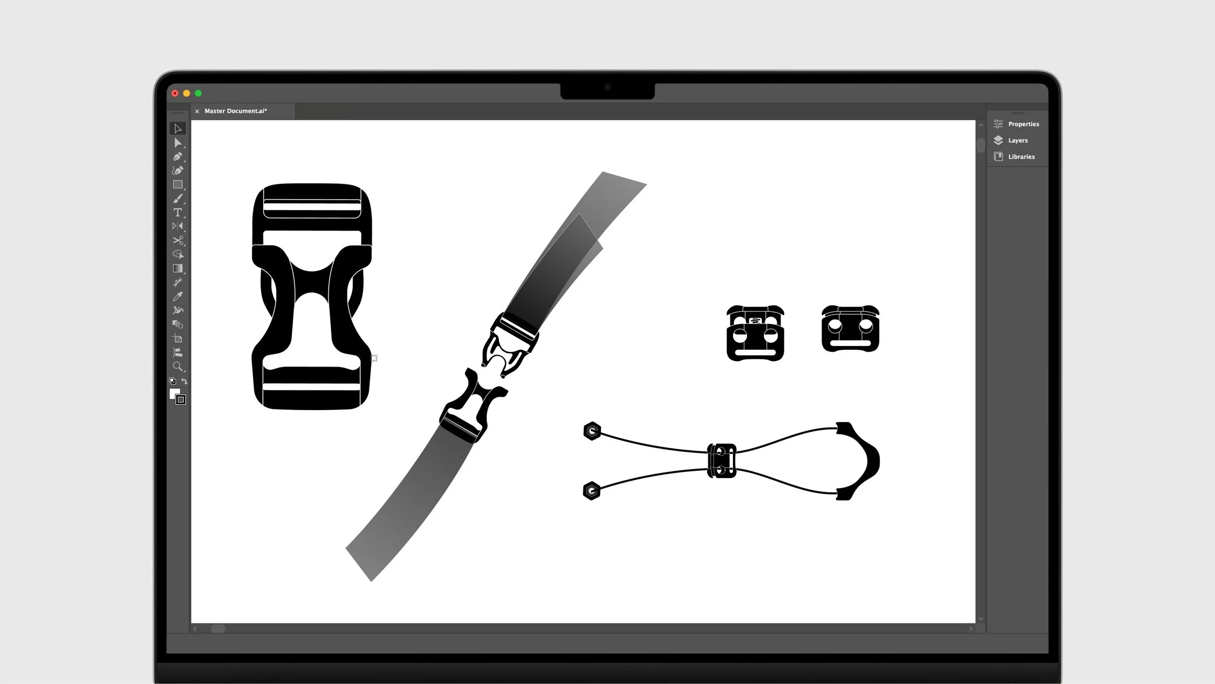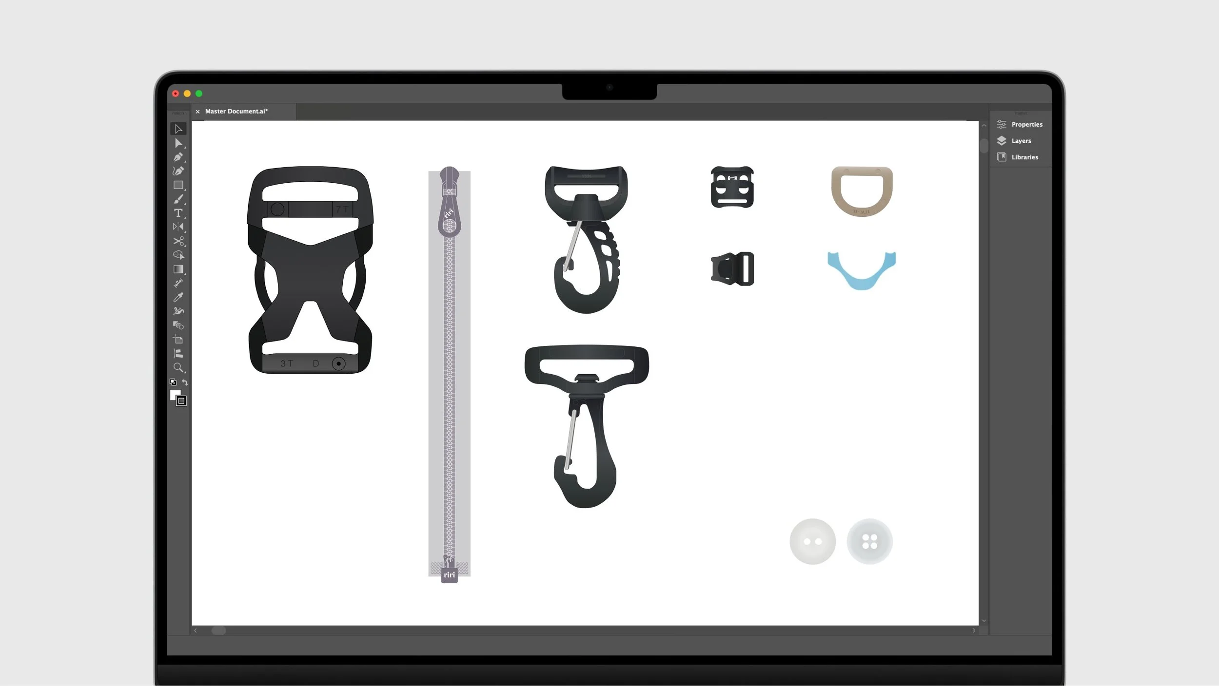 Double-click on buckles, and cord locks, to adjust them, and add refined detail sections to your designs.